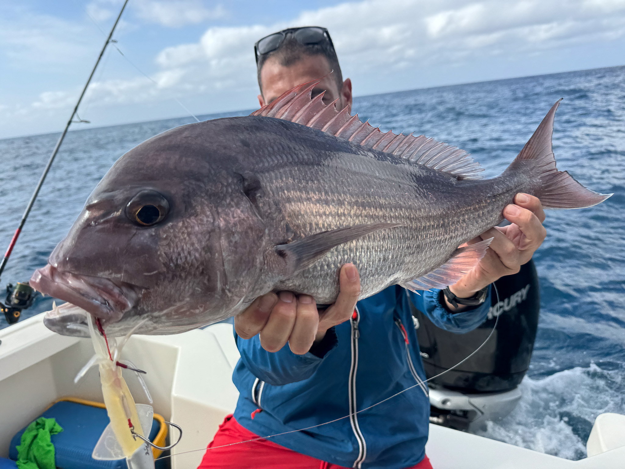 Nuestro barco está equipado con la última tecnología Garmin —sonda, radar y cartografía avanzada—, lo que nos permite localizar con precisión cada banco de peces y explorar los spots más productivos de la isla.